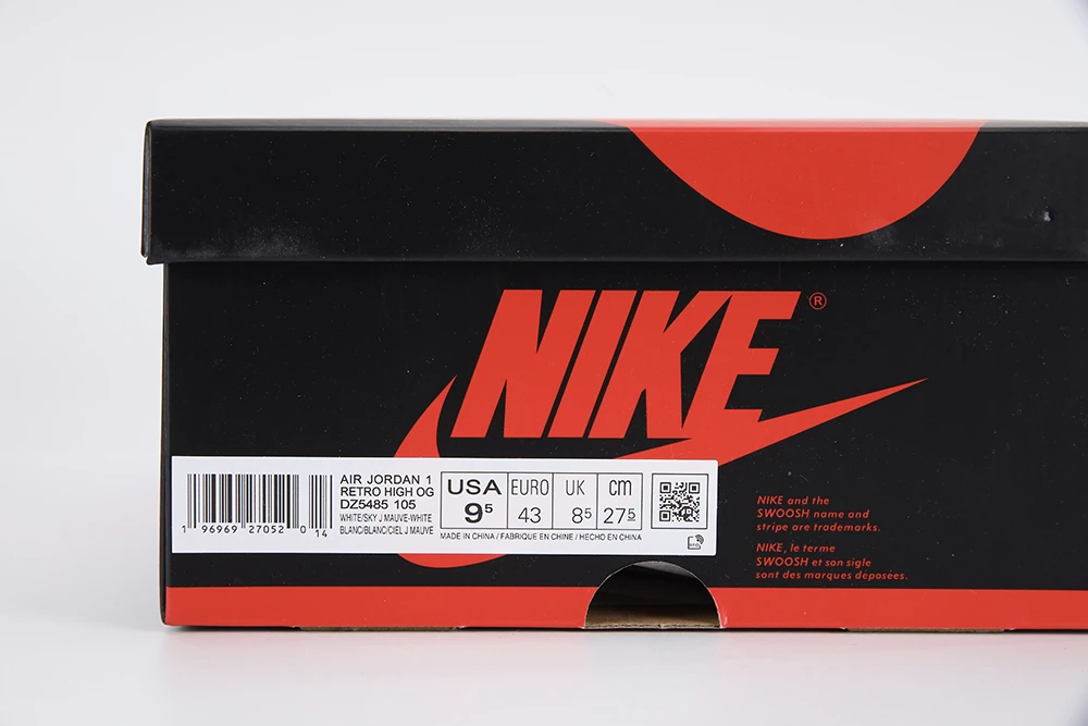 - Materials and details: The whole body is covered with leather material. The color is white as the base, with a violet frame and Swoosh. The appearance is simple and retro.