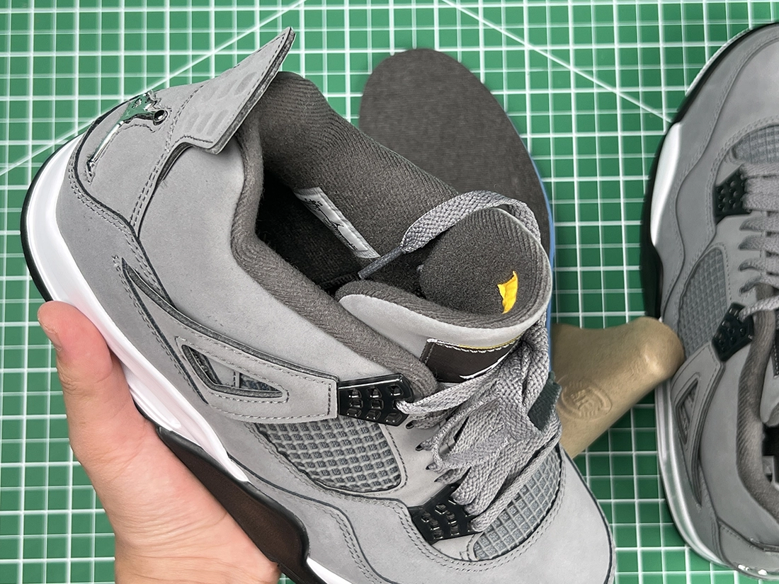 These AJ 4s are very similar to the 2004 release, featuring a cool gey upper, chrome hardware, and a dark charcoal interior. In classic Jordan 4 fashion, a heel tab is present sporting a Jumpman logo. A white midsole, dark charcoal outsole, and yellow detail embroidery on the tongue complete the design. These sneakers released in August of 2019 and retailed for $190.