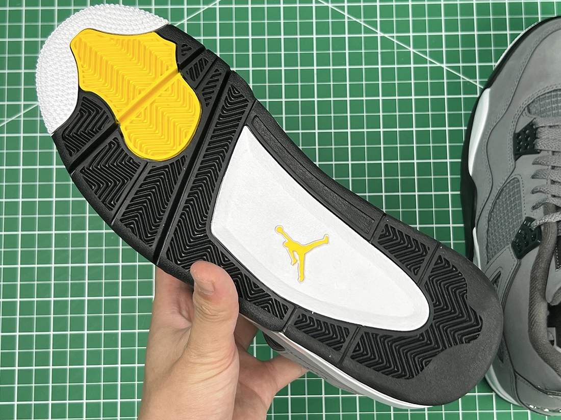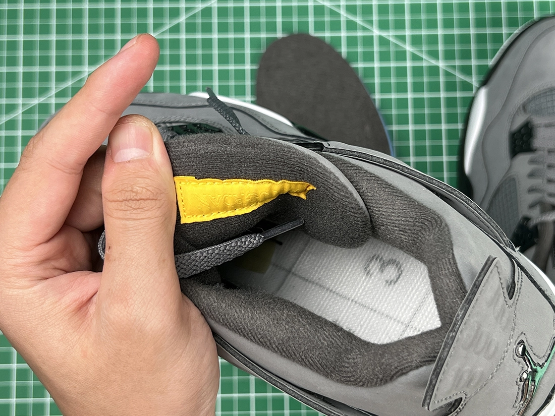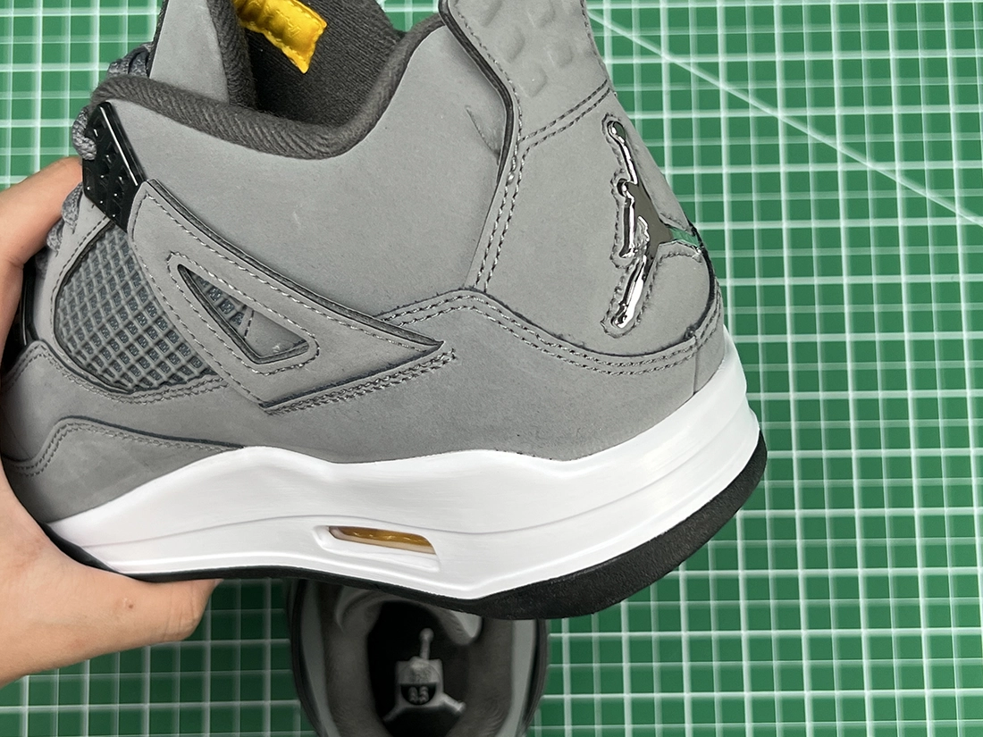 These AJ 4s are very similar to the 2004 release, featuring a cool gey upper, chrome hardware, and a dark charcoal interior. In classic Jordan 4 fashion, a heel tab is present sporting a Jumpman logo. A white midsole, dark charcoal outsole, and yellow detail embroidery on the tongue complete the design. These sneakers released in August of 2019 and retailed for $190.