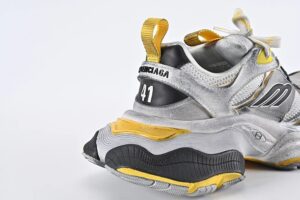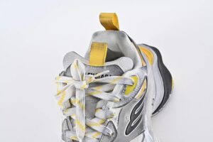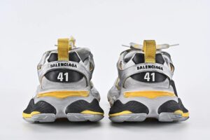 Cargo Sneaker in grey, black and yellow microfiber and mesh is from Balenciaga’s Summer 24 Collection, in exclusive release. Its cutting-edge design, exaggerated volumes and reflective details give it a unique silhouette.